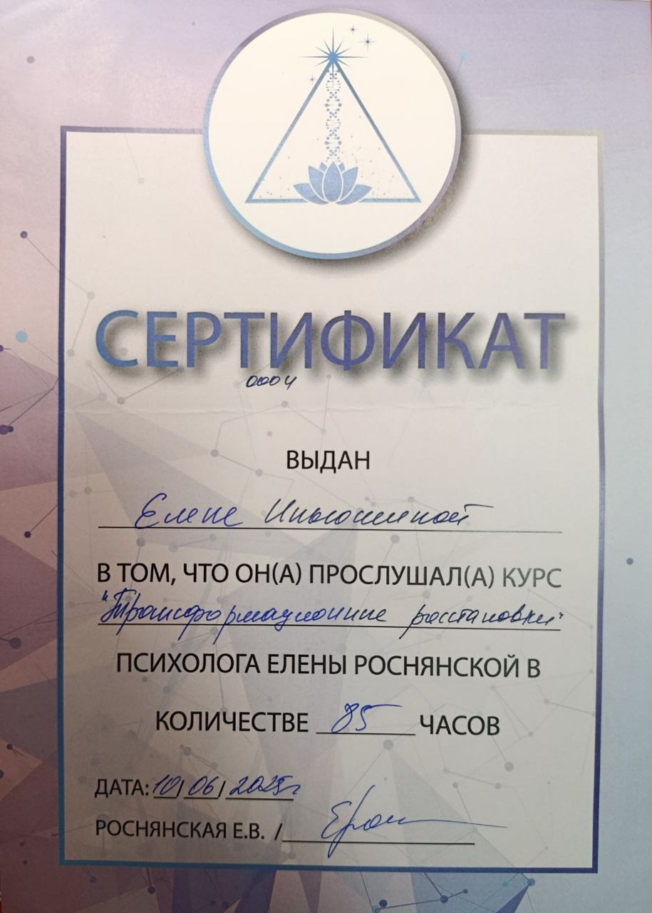 Сертификаты. Энергопрактик Елена Ильюшина